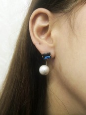 デニムブルーのスワロビジューとキャッチにコットンパールが付いたシンプルなピアスです。