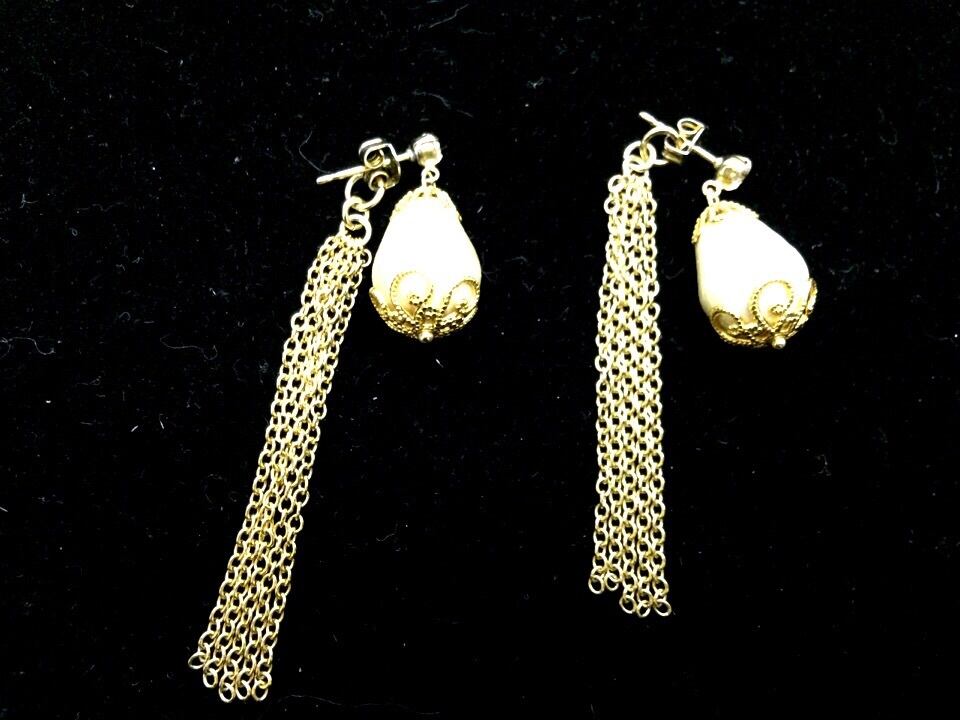 キャッチを変えてシンプルに一粒コットンパールのキャッチピアスとして使用しても、豪華にゴールドチェーンのキャッチにしてもとちらも楽しめるデザインになっています。